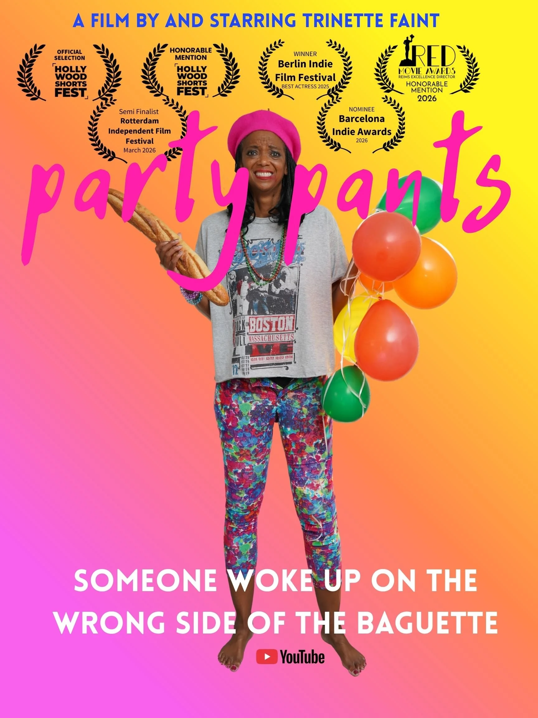 Trinette is an award-winning actress, screenwriter, and novelist. She received the Best Actress award from the Berlin Indie Film Festival, in September 2025, for her performance in her short film Party Pants, which she also wrote, produced, and co-directed. Party Pants also received a Best Short Screenplay nomination from the Barcelona Indie Awards Festival, in February 2026, an Honorable Mention nod from the Hollywood Shortsfest, in February 2026, a Best Comedy Honorable Mention from the RED Movie Awards Festival, in March 2026, and a semifinalist award from the Rotterdam Independent Film Festival, in March 2026.